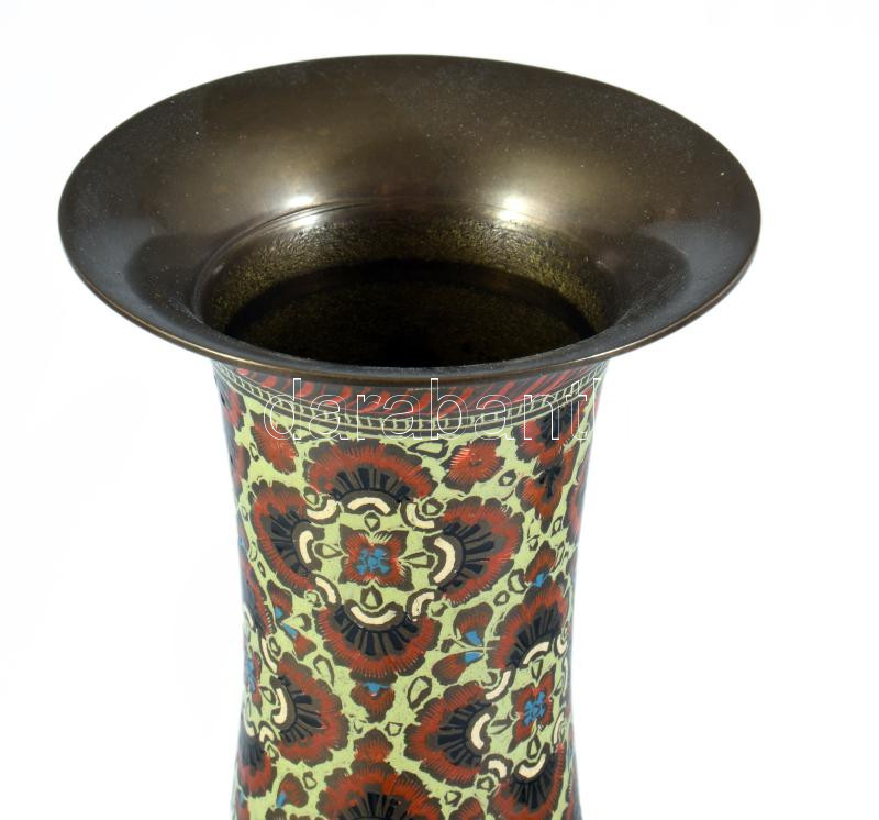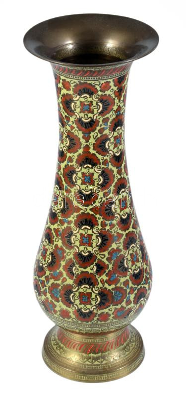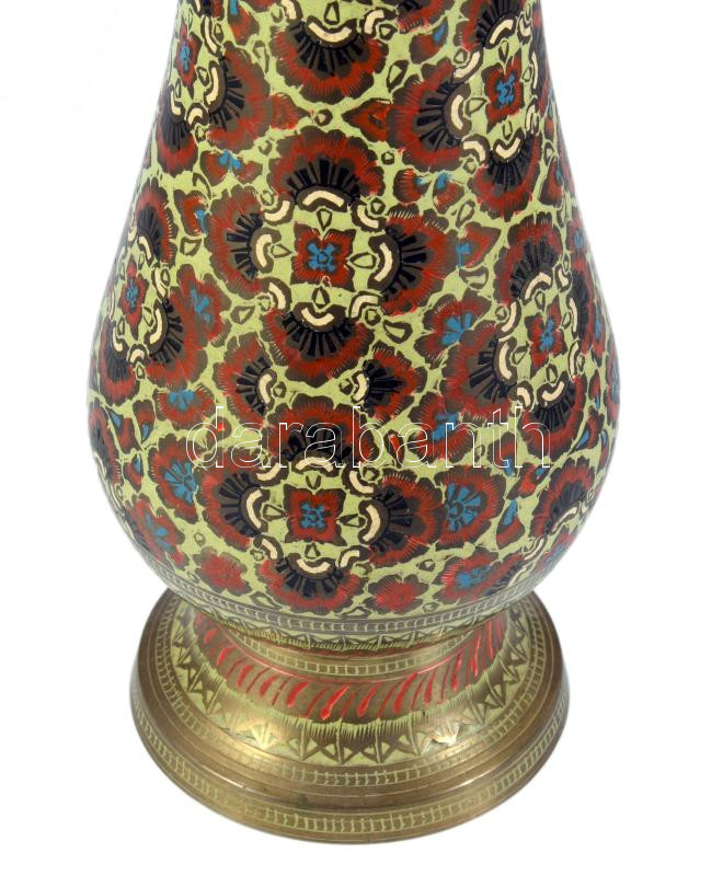 Keleti réz váza, zománcozott mintával, m: 25 cm