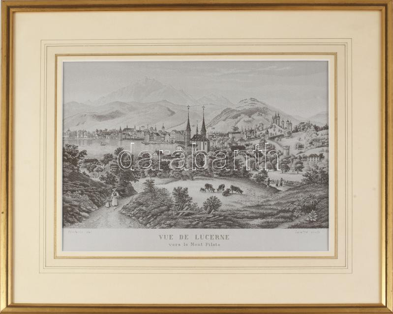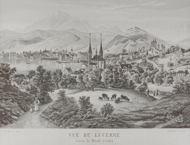 Lucerne metszet selyemre nyomva, üvegezett keretben Külső méret 47x34 cm