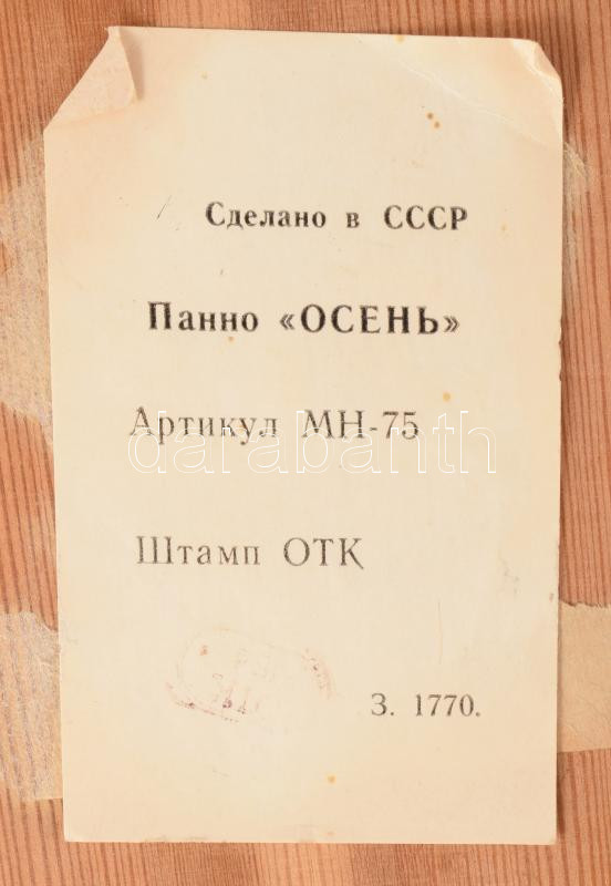Ocseny panno réz lemez fali dísz fa alapon. 21x36 cm