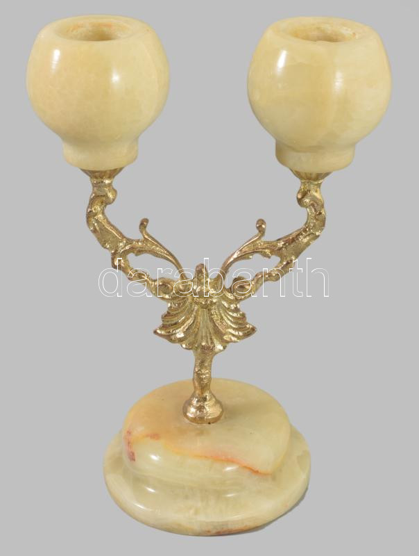 Ónix kétágú gyertyatartó, m: 19,5 cm