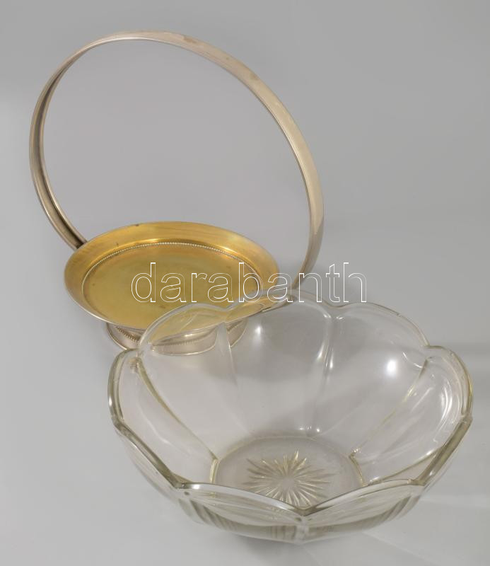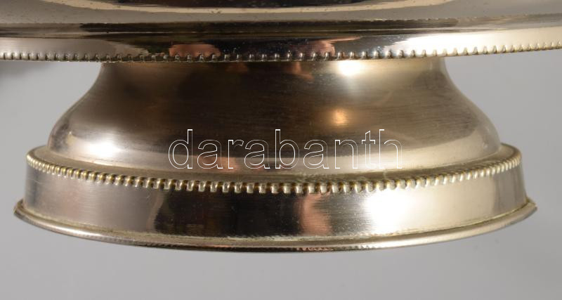 Régi ezüstözött kínáló üveg tállal, m: 27 cm