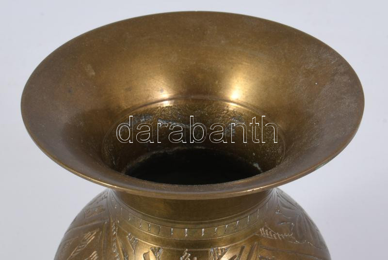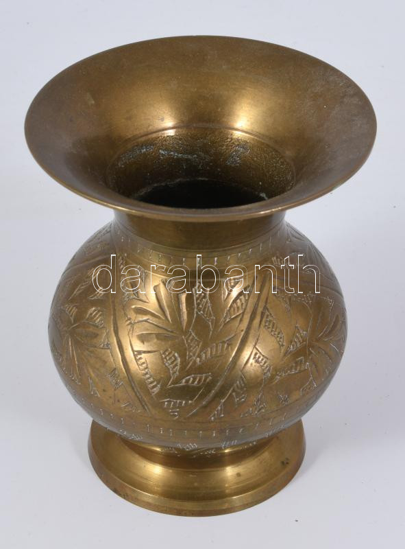 Réz váza, vésett mintával, m: 10 cm