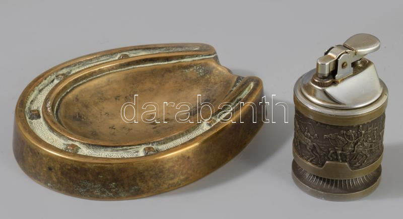 Szerencsepatkó alakú réz hamutál 14 cm + ón öngyújtó