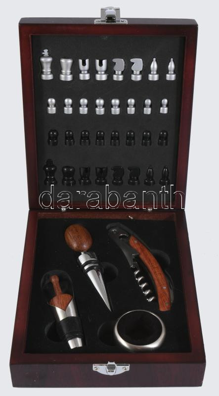 Utazó bornyitó és sakk készlet, 17x14 cm