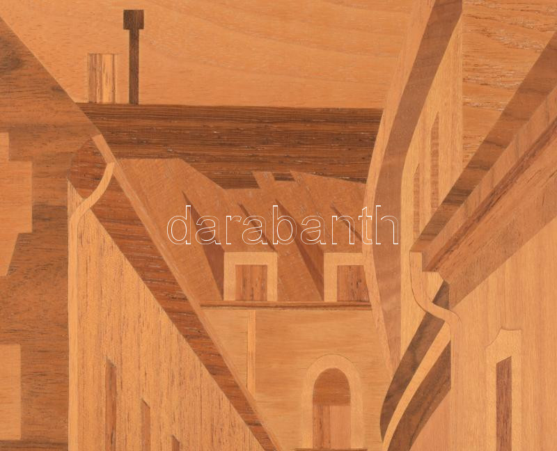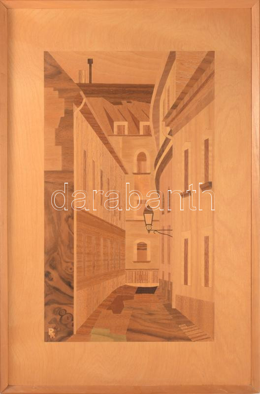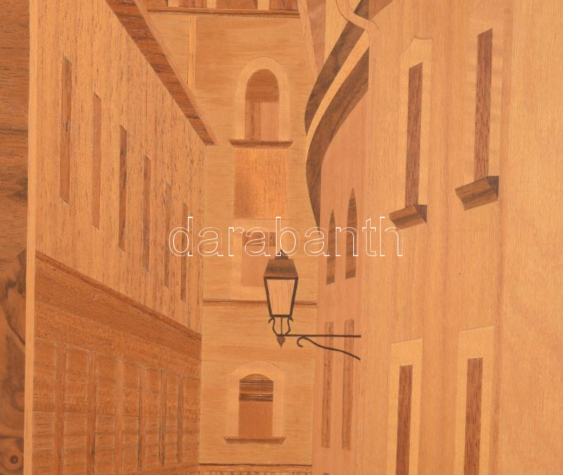 Városkép. Iparművész fa intarzia, zsűrizett 28x38 cm
