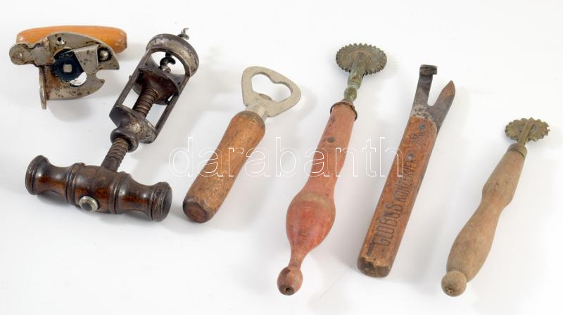 Vegyes régi tárgy tétel, közte dugóhúzó, derelyevágó