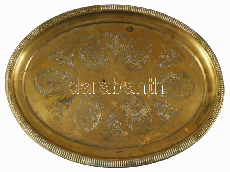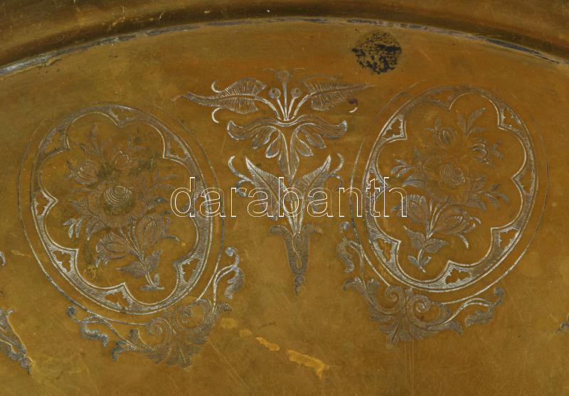 cca 1900 Alpakka tálca virágmintákkal, 35x27 cm