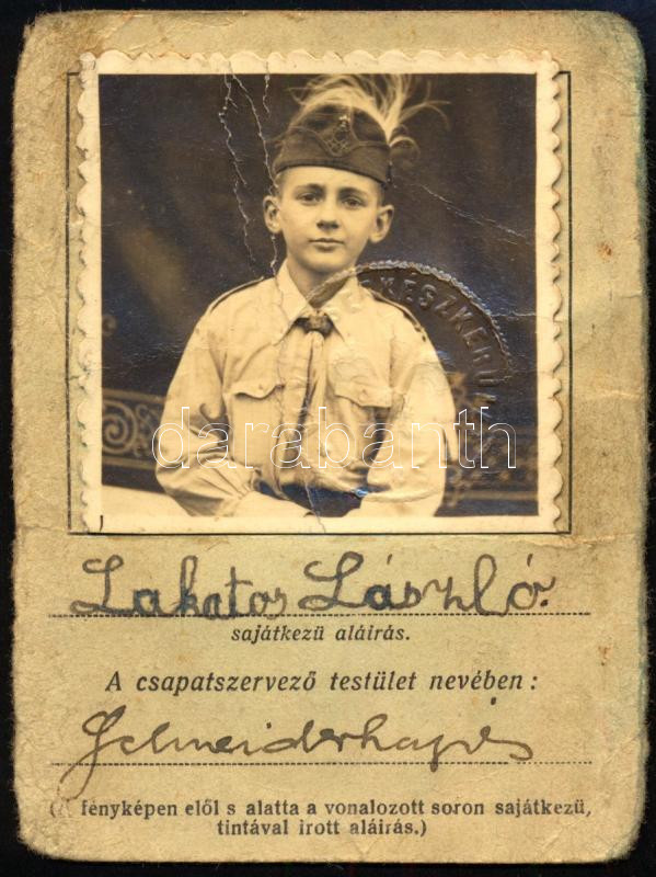 cca 1922 Fényképes cserkész igazolvány
