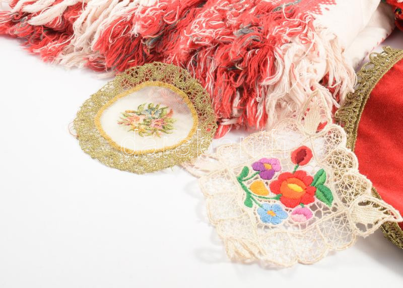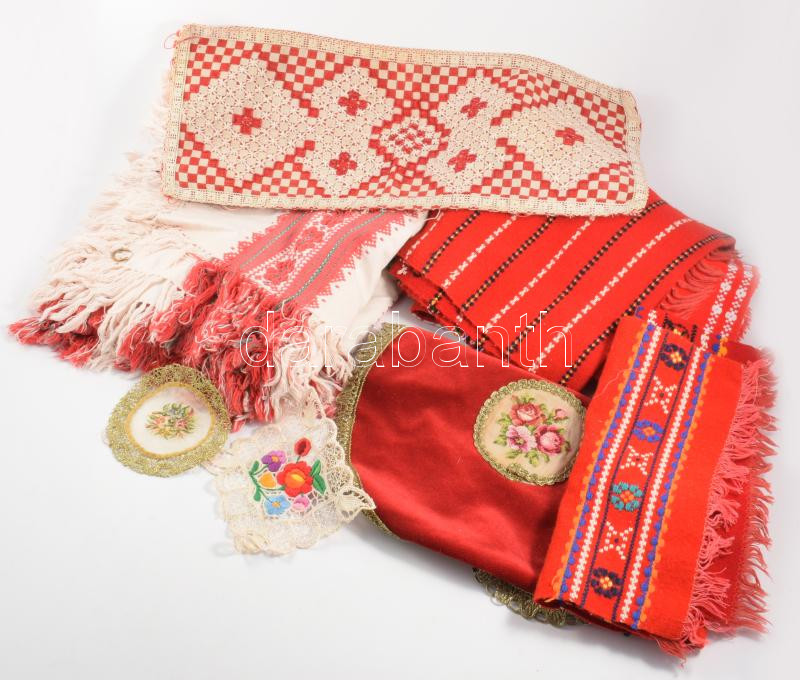 Doboznyi vegyes kézzel hímzett és géppel hímzett terítő tétel, klf méretben
