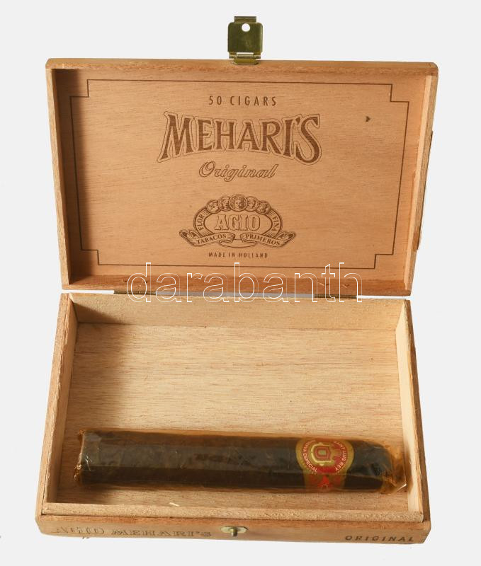 Hemaris fa szivaros doboz, benne bontatlan Saint Luis Rey szivarral, 11x17 cm