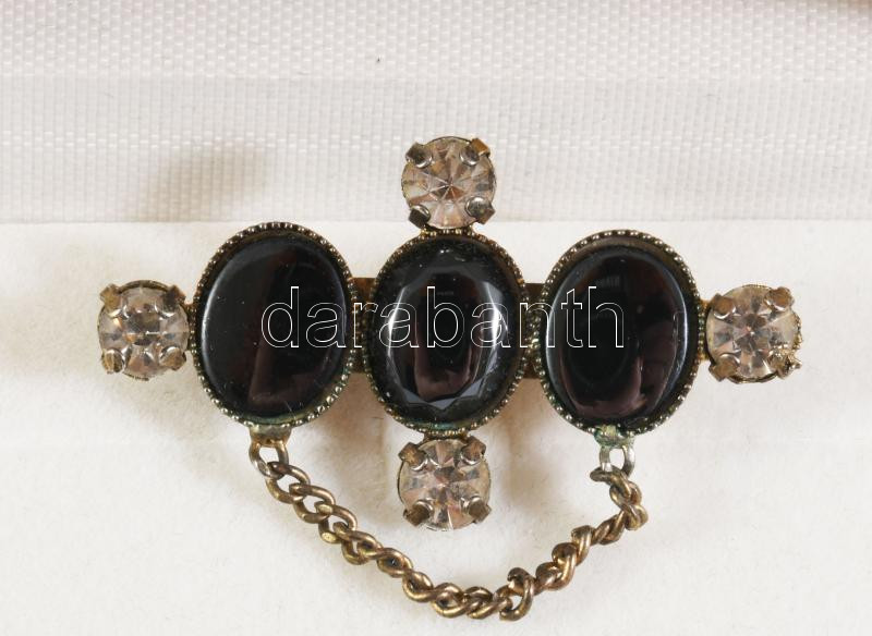 Régi bross h: 4 cm, bársonybevonatú ékszertartóban h: 7,5 cm