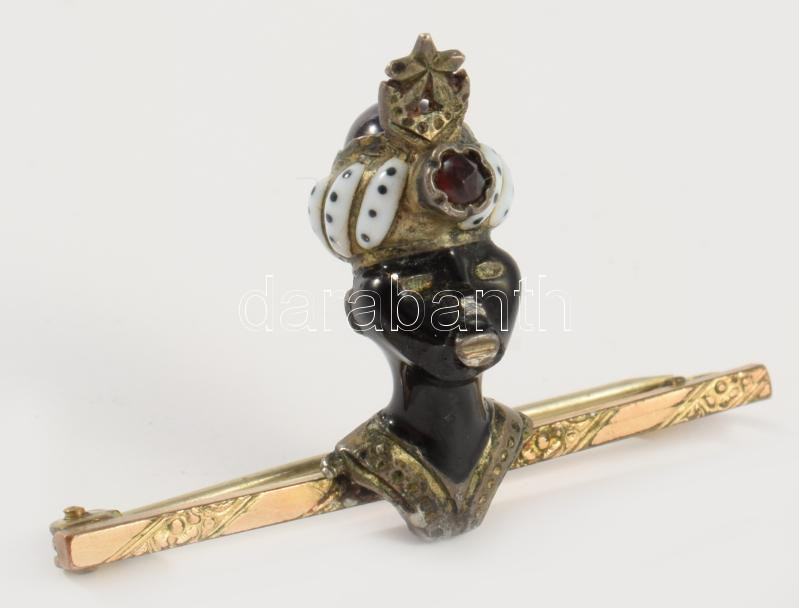 Szerecsenfejes bross. Zománc, aranyozott 40x23 mm