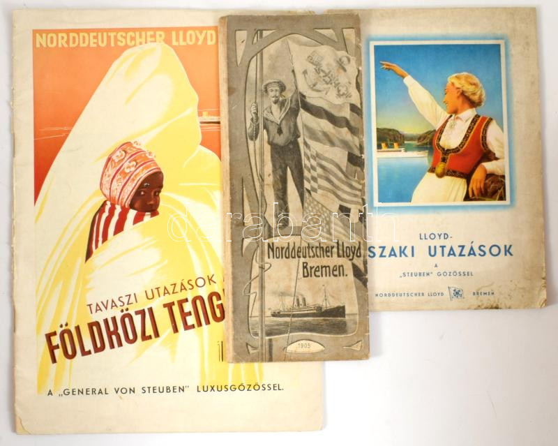 1905-1936 Norddeutscher Lloyd Bremen 3 db utazási prospektusa: