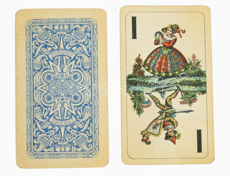 cca 1930-1940 Chromo Magyar Ált. Papíripar Rt. tarokk kártya, 42 lapos (komplett), kártyabélyeggel
