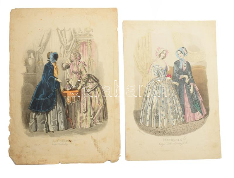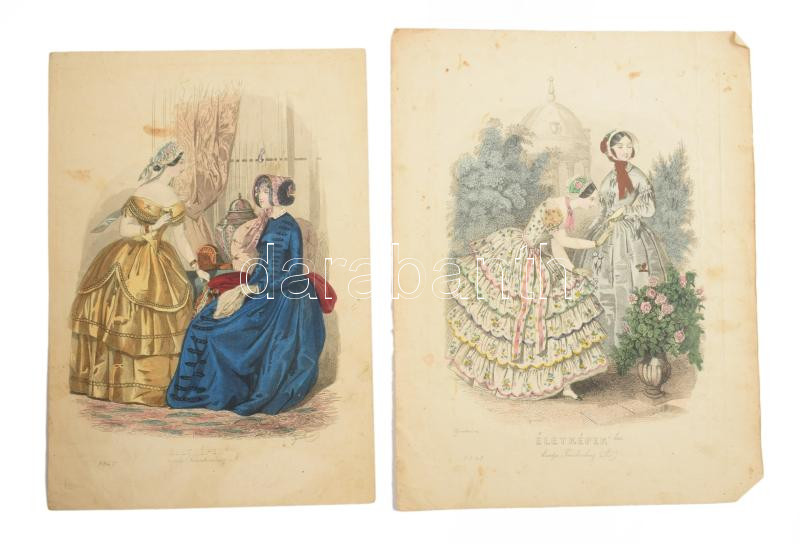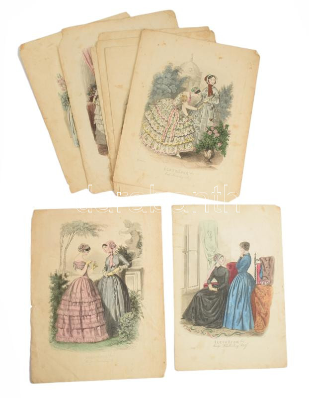 1847 Színes illusztrációk az Életképek szépirodalmi divatlapból, Tyroler József (1822-1854) metszései, 10 db színezett acélmetszet, változó állapotban, lapméret: 25x17 cm és 28x20 cm között