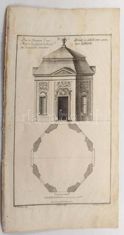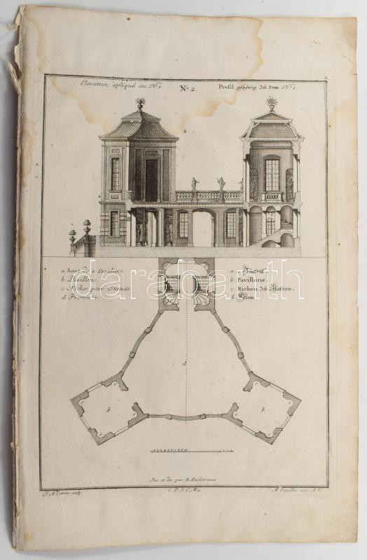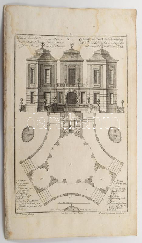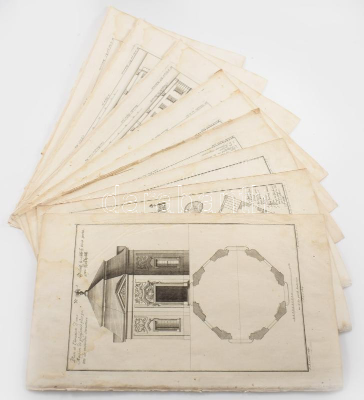 Martin Engelbrecht - Alexander Gläser, Augusta Vindel: kastélyok, épületek Vegyes építészeti metszetek. ca 1730 10 db Rézmetszet. / Architectural plans of different castles and buildings. Engravings 10 pcs 39x24 cm