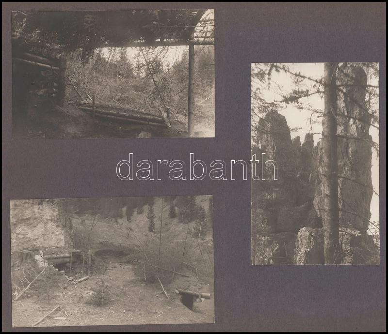 cca 1914-1918 I. világháborús felvételek: katonai csoportképek, hadikórház, életképek a frontról, stb., összesen 16 db fotó, két albumlapra ragasztva, 4x5,5 cm és 9x14 cm között