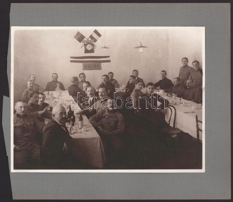cca 1914-1918 "Isten hozott", hazatért katonák ünnepelése, későbbi előhívás - nagyítás (cca 1920-1930), fotó kartonon, 24x18 cm