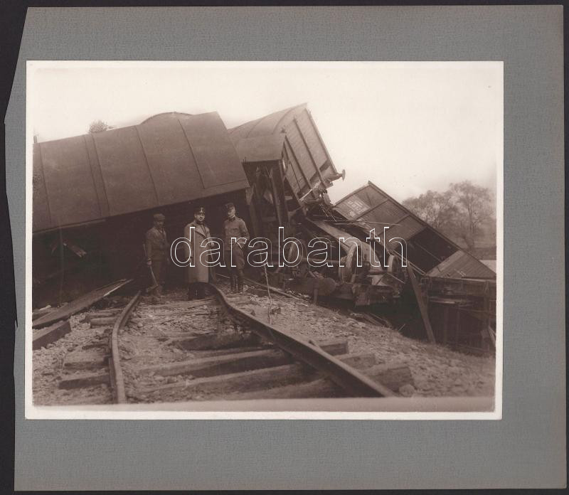 cca 1914-1918 Katonai szemle vonatszerencsétlenség helyszínén, későbbi előhívás - nagyítás (cca 1920-1930), fotó kartonon, 24x18 cm