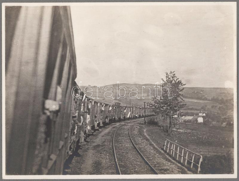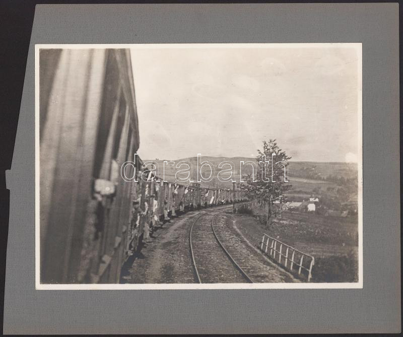 cca 1914-1918 Katonavonat úton, későbbi előhívás - nagyítás (cca 1920-1930), fotó kartonon, 24x18 cm