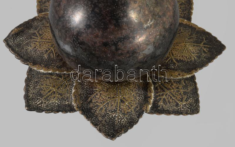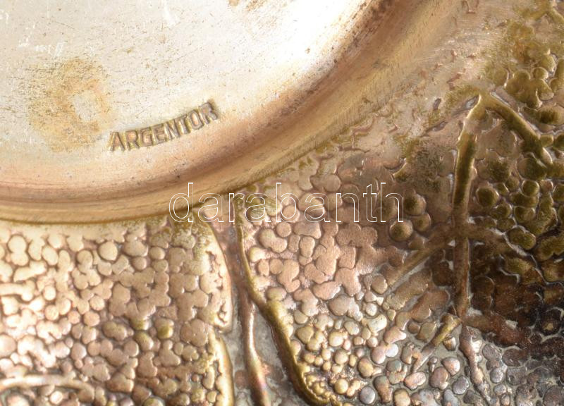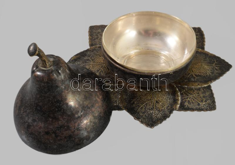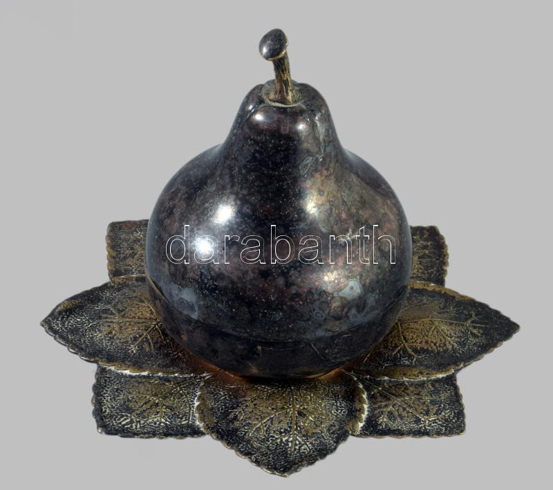 Argentor ezüstözött körte alakú fedeles edény, üveg betéttel, jelzett, m: 14 cm