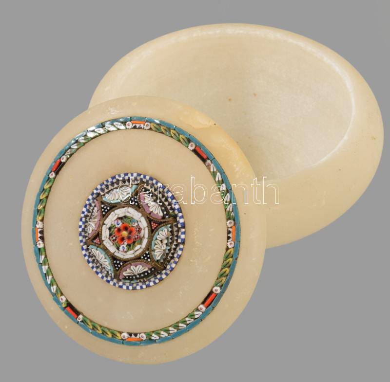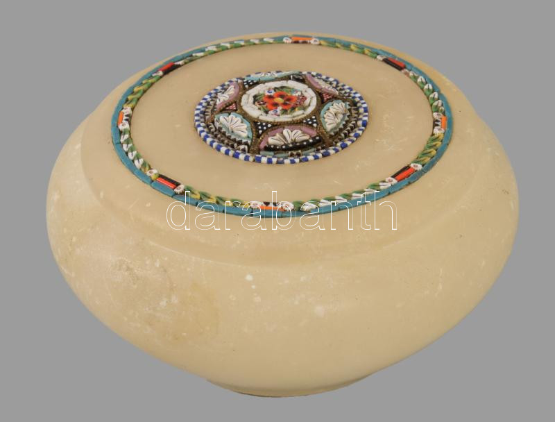 Ásvány bonbonier, tetejében murano mikromozaik berakással, d: 8 cm