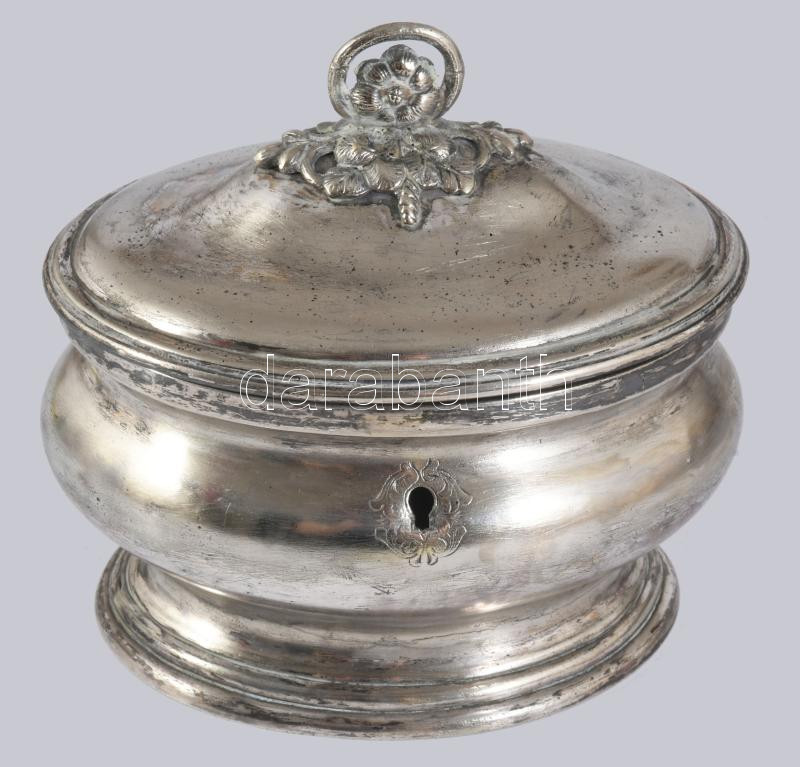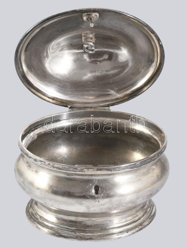 Berndorf ezüstözött cukordoboz, kulcs nélkül, jelzett, 13x11,5 cm