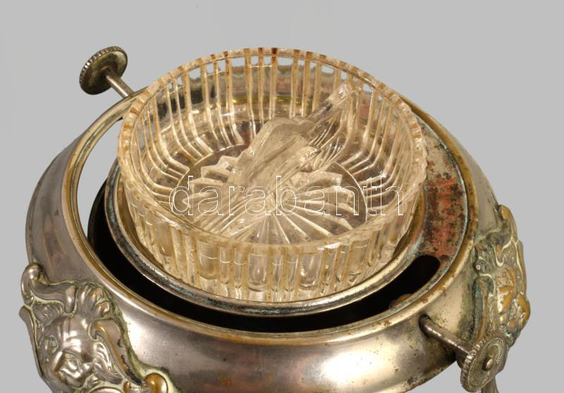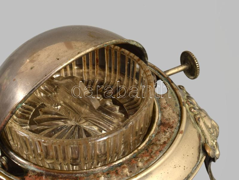 Fűszertartó edényke lezárható fedéllel, fém, üveg betéttel d: 10 cm