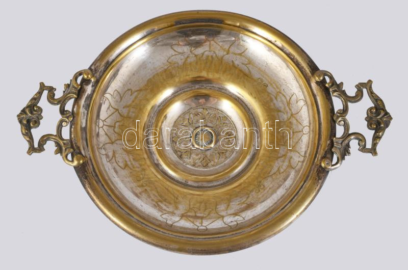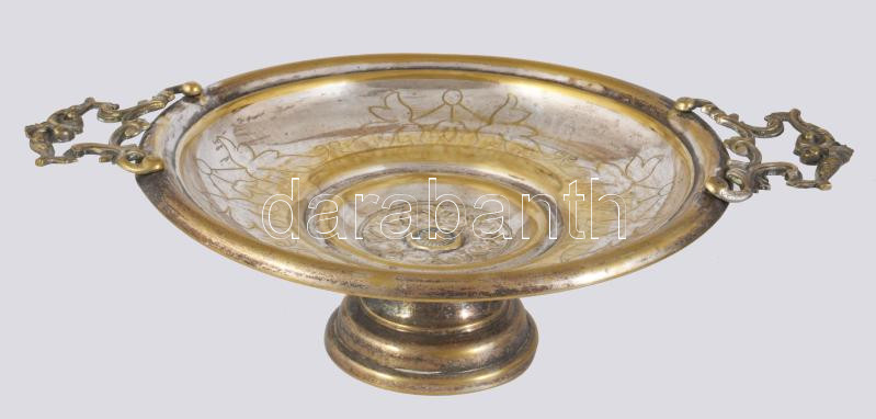 Historizáló ezüstözött alpakka talpas kínáló, 33x10 cm