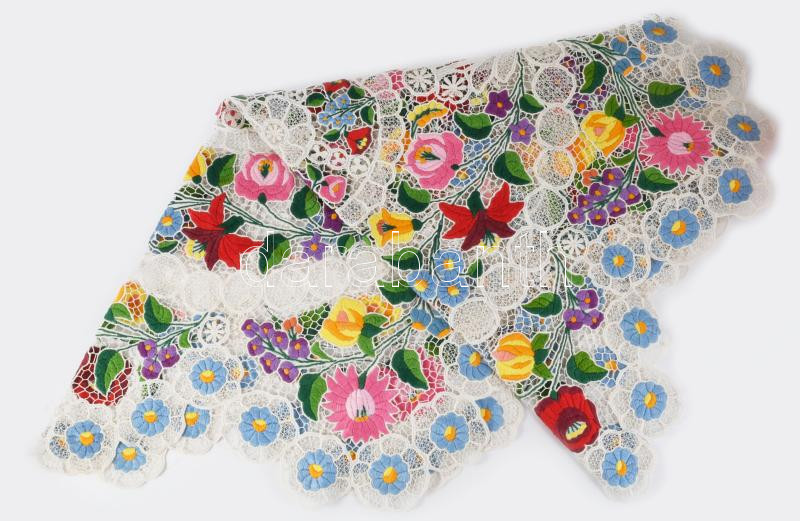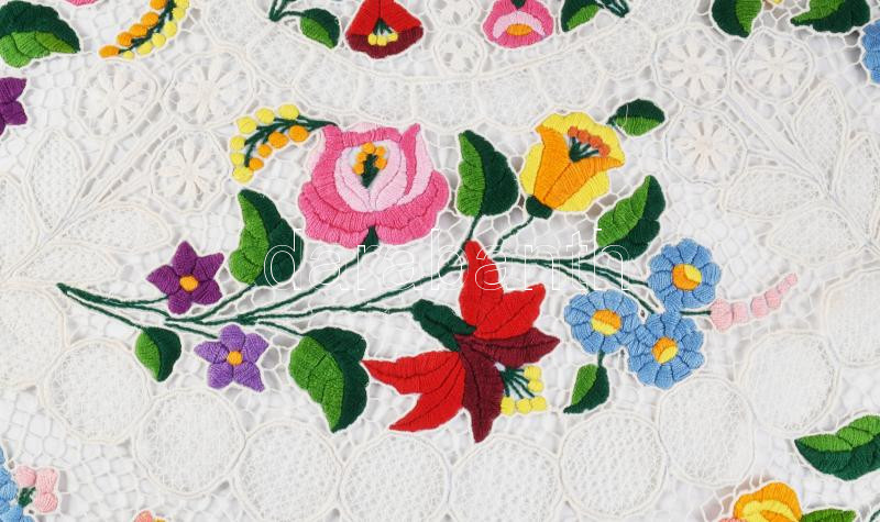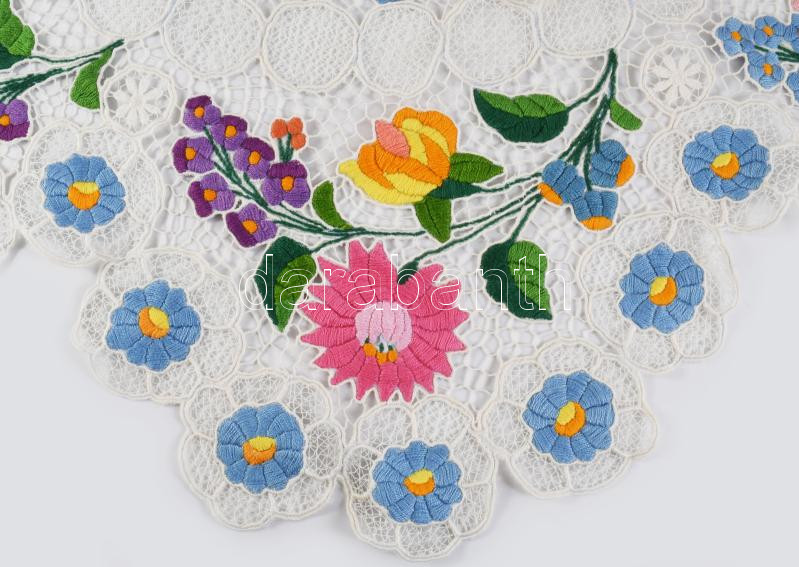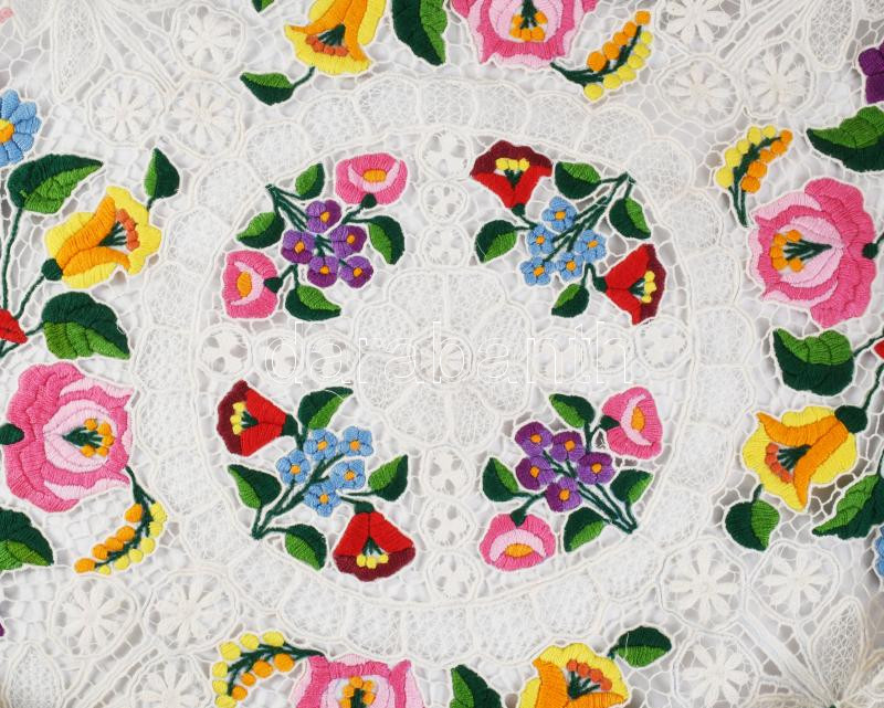 Kalocsai mintás hímzett asztal terítő csipke d: 105 cm