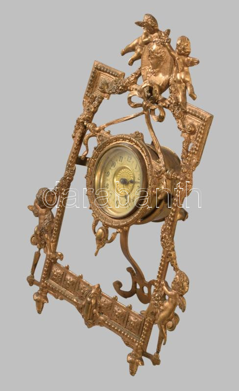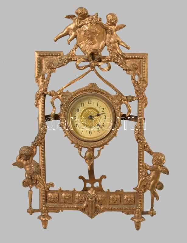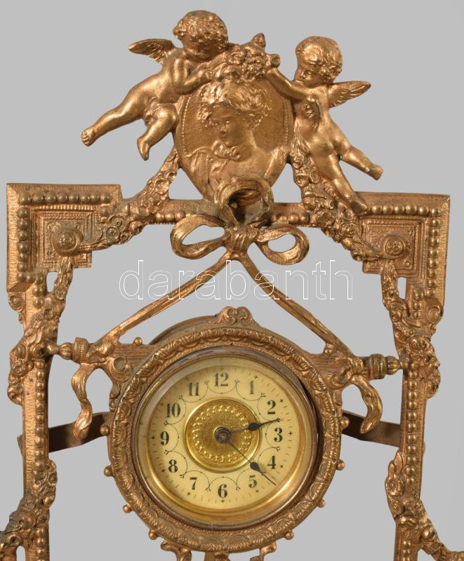 Neorokokó puttó figurás asztali óra, m: 24 cm