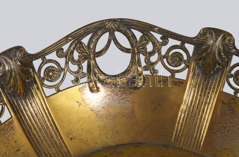 Szecessziós ezüstözött alpakka kínáló, kopott, d: 25 cm