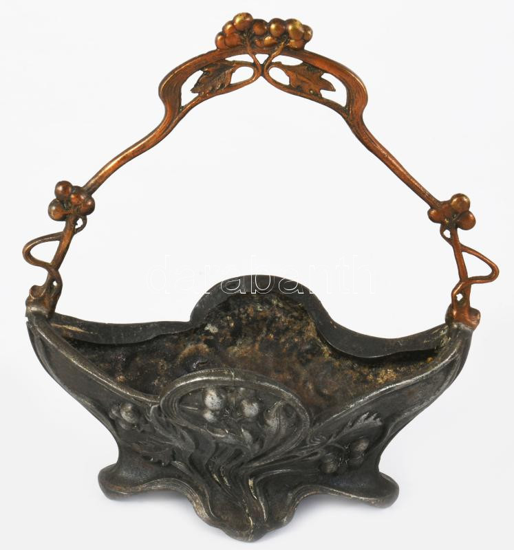 Szecessziós fém kínáló, m: 17 cm