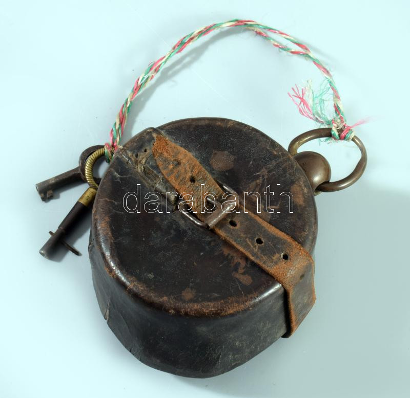 cca 1890-1910 Bécsi bakteróra / járőr óra, bőr tokjával, fogója javított, kulccsal, működik.