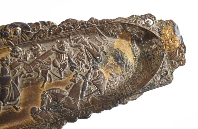 cca 1920 Kínai aranyozott ón pennatartó, 24x8 cm