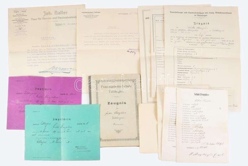 1871-1927 Tuttlingen, Vegyes német okmánytétel, főleg iskolai iratok, közte 1 db 1950-es okmány is, kb.13-14 db