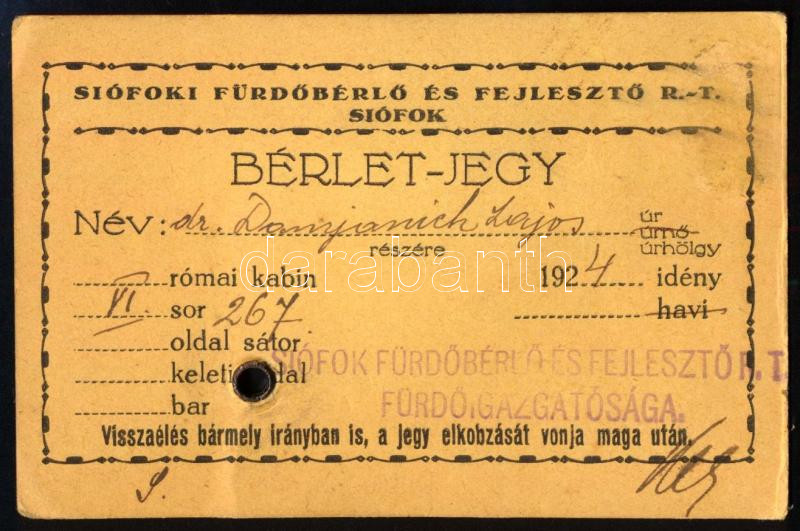1924 Siófoki Strandfürdő fényképes igazolvány