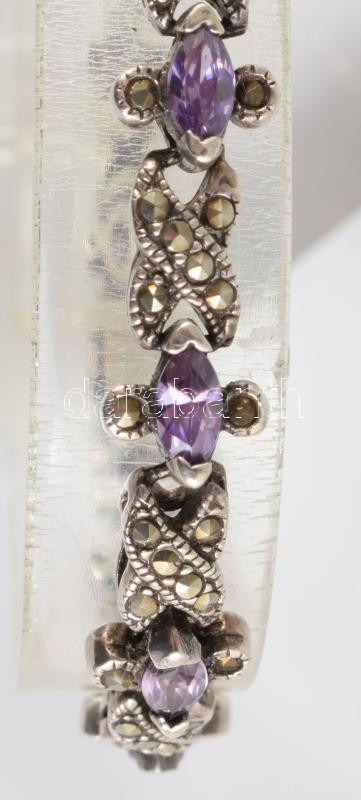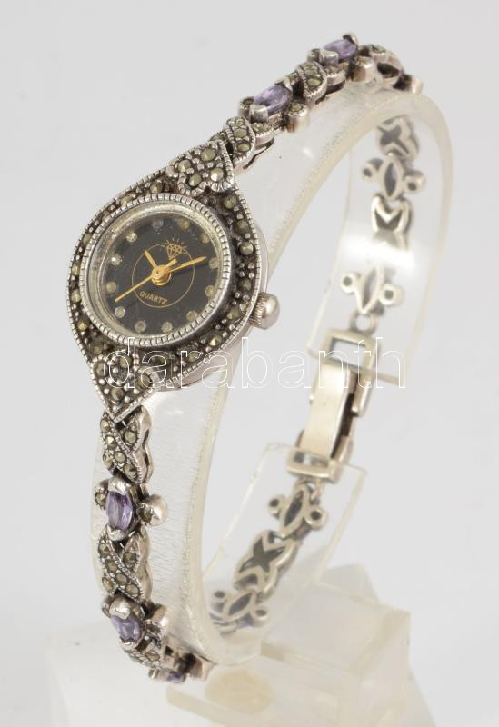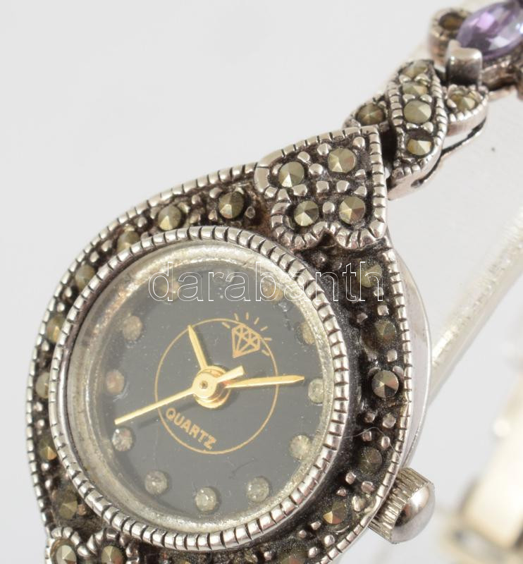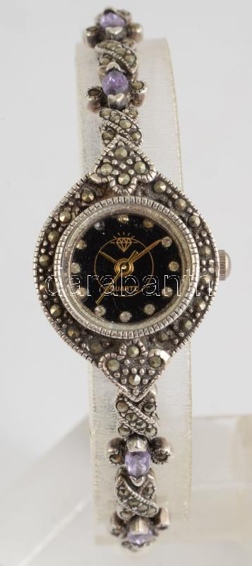 Ezüst (Ag) női karóra, kövekkel, kvarc, bruttó 23,1g