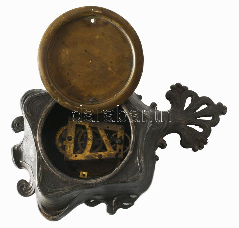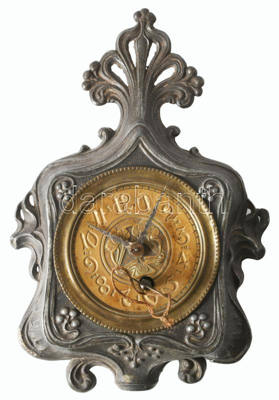 Szecessziós ón óra, felhúzójával, hiánnyal, 28x19 cm