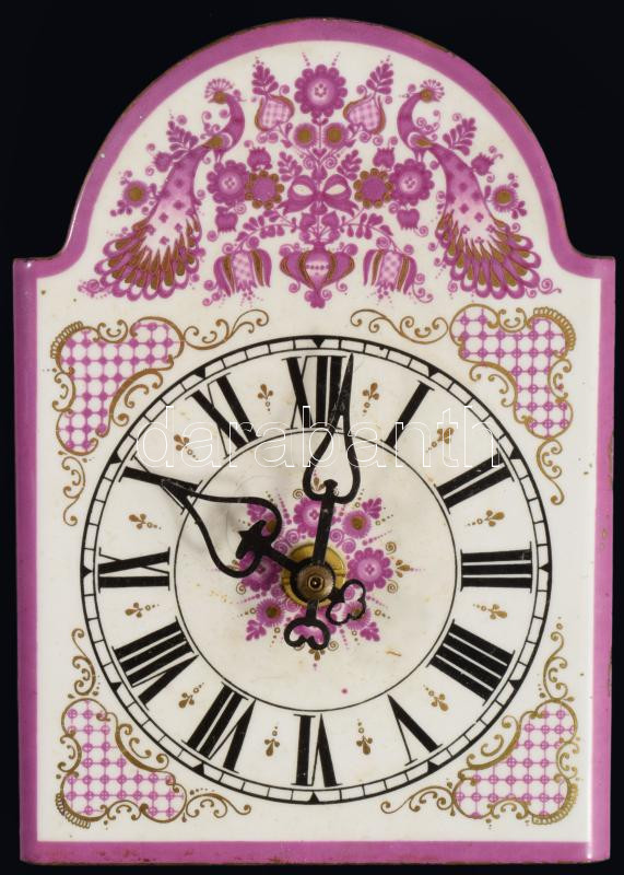 Zománcozott fém lapos óra, Junghans elemes szerkezettel, 17x12 cm