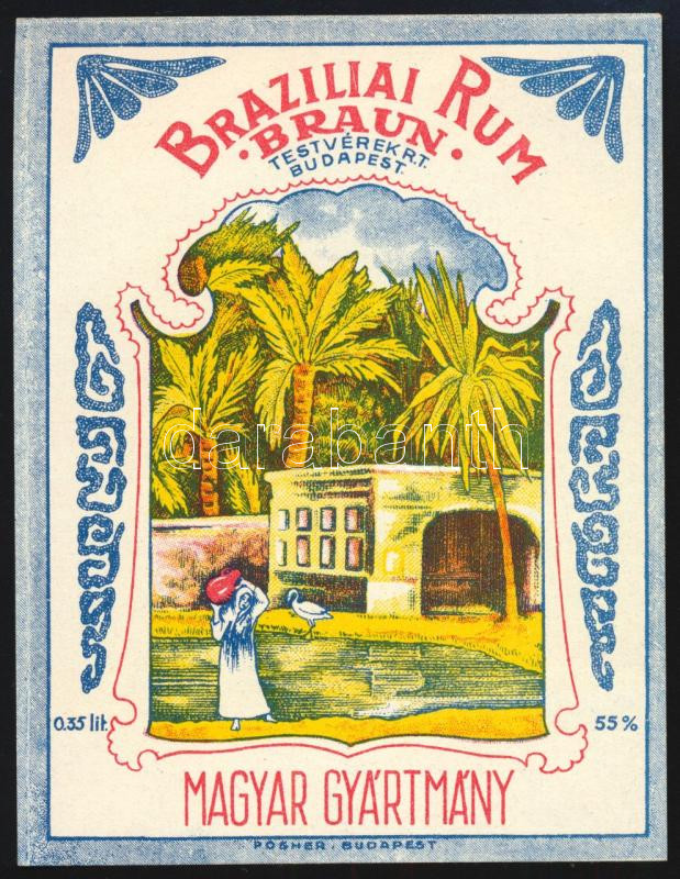 "Braun Testvérek Rt. Braziliai Rum, 55%, 0,35l." italcímke, Bp., Posner-ny, 10x8 cm