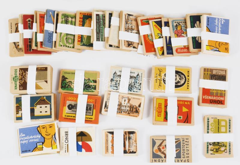 Kb 1000 db csehszlovák gyufacímke, soronként rendezve, dobozokban