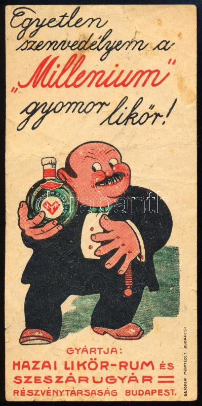"Millenniumi" gyomorlikőr" számolócédula, hajtott, sérülésekkel