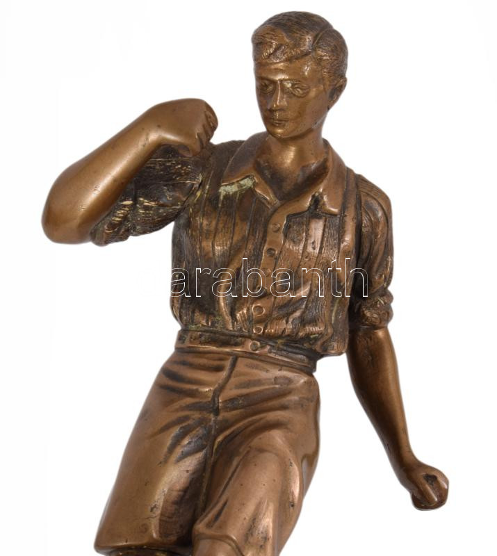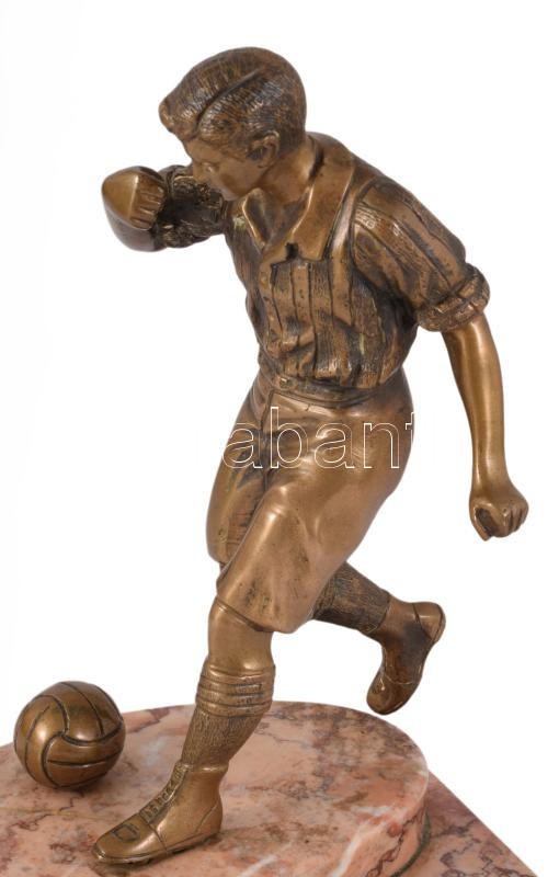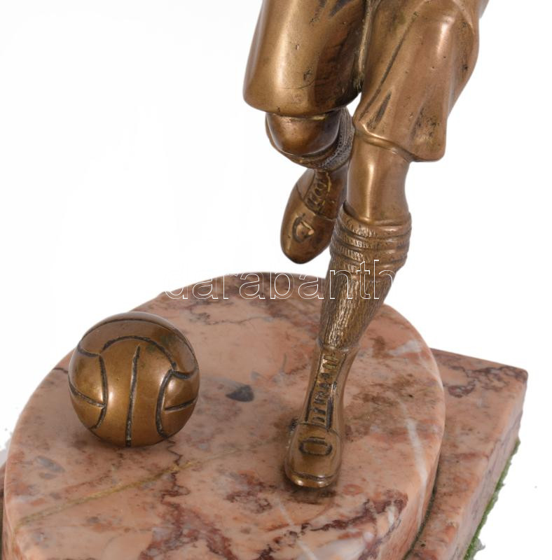 Bozsik József (1925-1978) labdarúgó bronz szobra. Patinázott bronz, márvány talapzaton, m: 21 cm