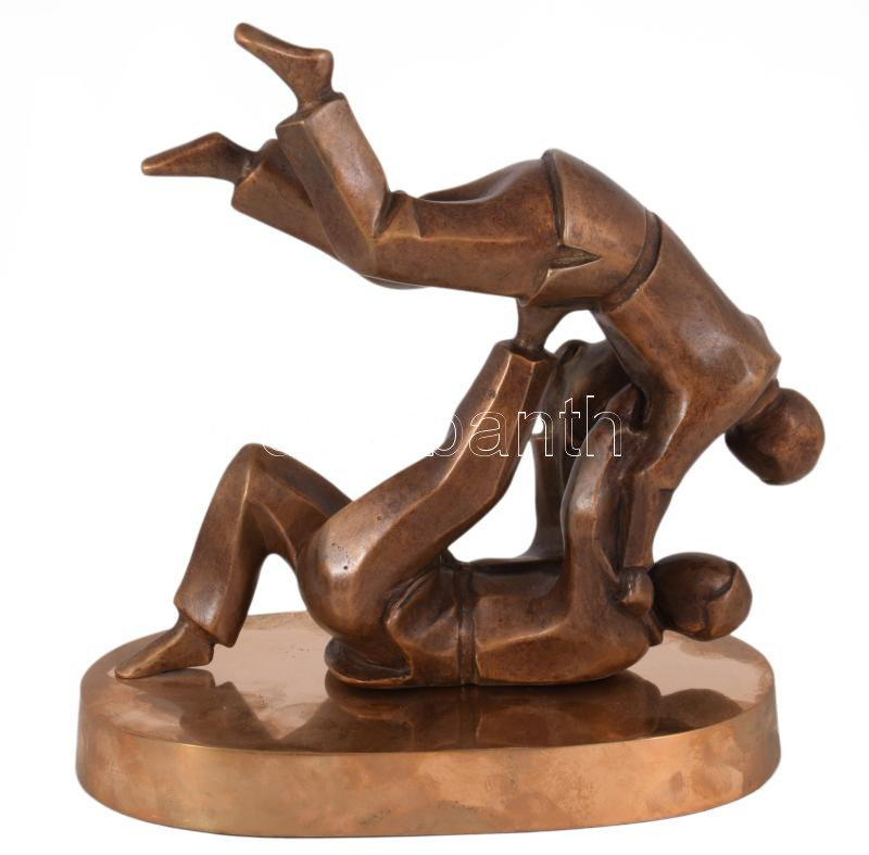 Fodor Lengyel Zoltán: (1963-): Tomoe Nage. Bronz, talapzaton, jelzés nélkül, 24x25 cm