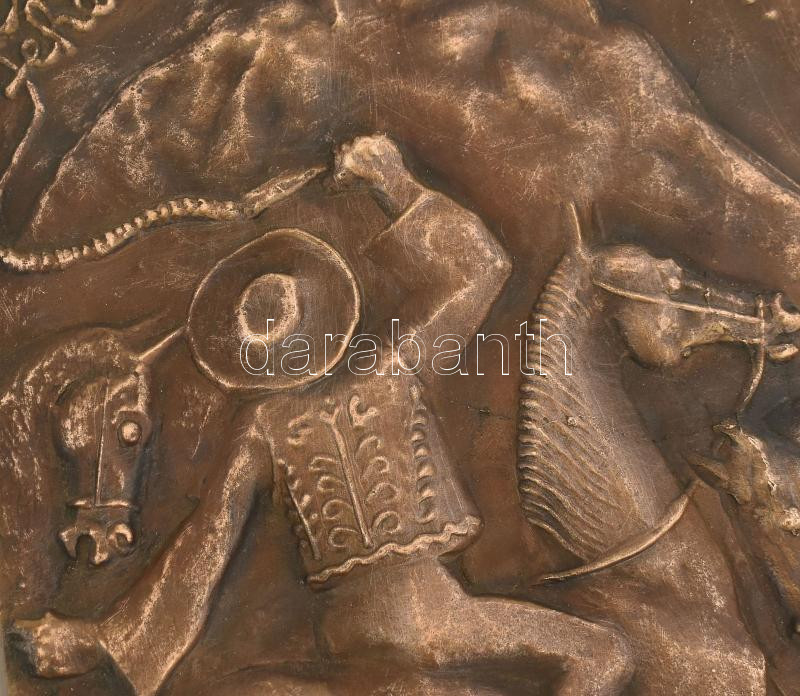 Kő Pál (1941-2020): Fehér László lovat lopott. Bronz fali dísz, relief. Jelzett. 19x31 cm