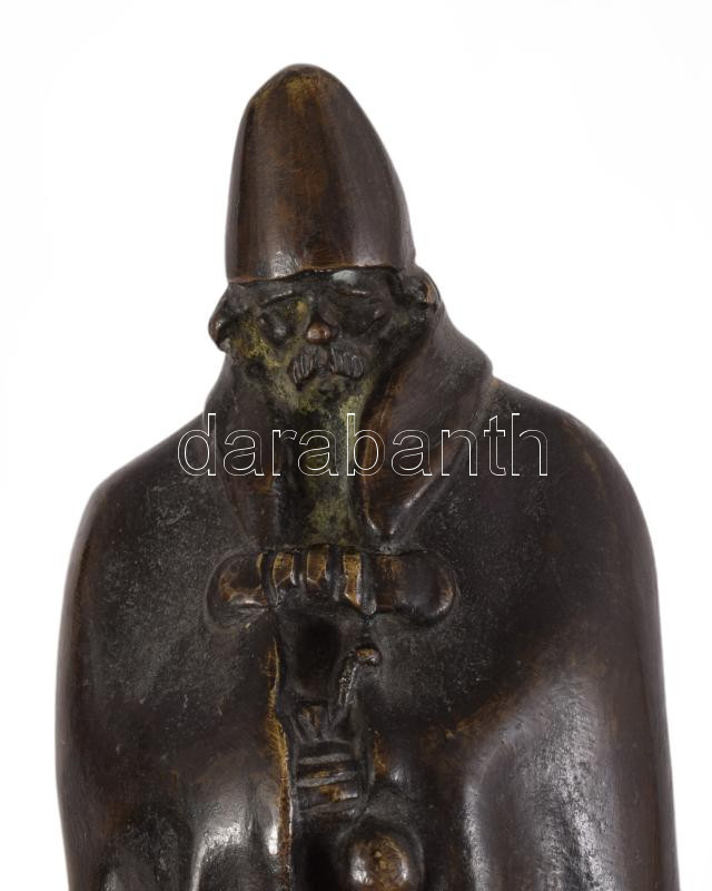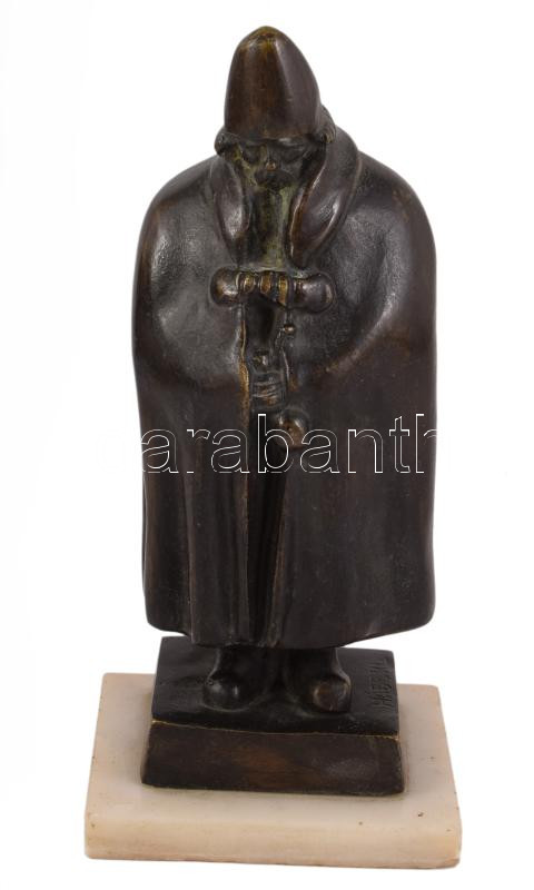 cca 1920 Háberl jelzéssel: Búsuló juhász, patinázott bronz, m: 21,5 cm