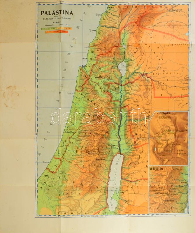 Palästina térképe, készítette: Dr. H. Haack és Pfarrer F. Burbach, 1:400 000, 80×66 cm