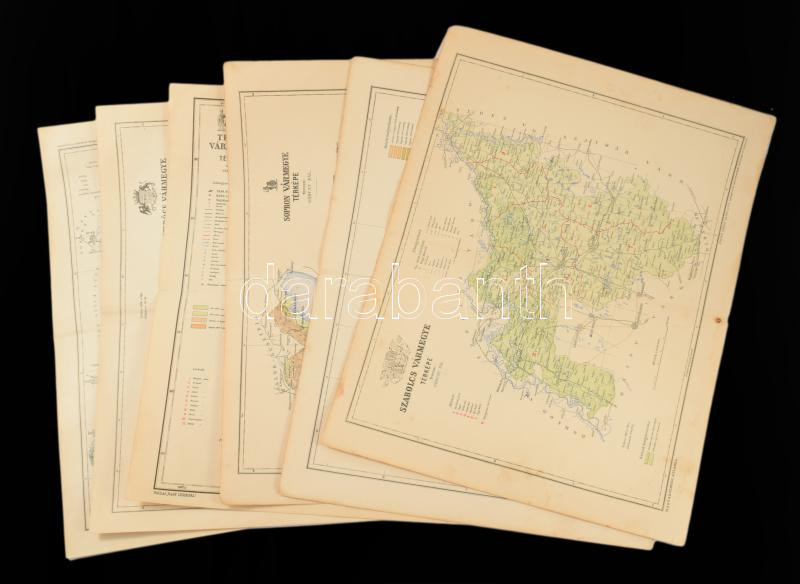cca 1900 8 db vármegye térkép: Sopron, Szeben, Szabolcs, Temes, Verőce, Tolna, Jász-Nagykun-Szolnok, Heves. 17x24 cm