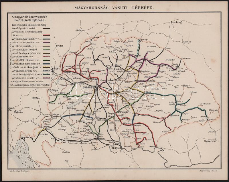 cca 1900 Magyarország vasúti térképe, Pallas Nagy Lexikona, Bp., Posner-ny., 24×30 cm